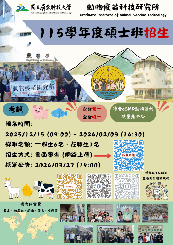 歡迎有興趣的同學報名加入疫苗所的行列!